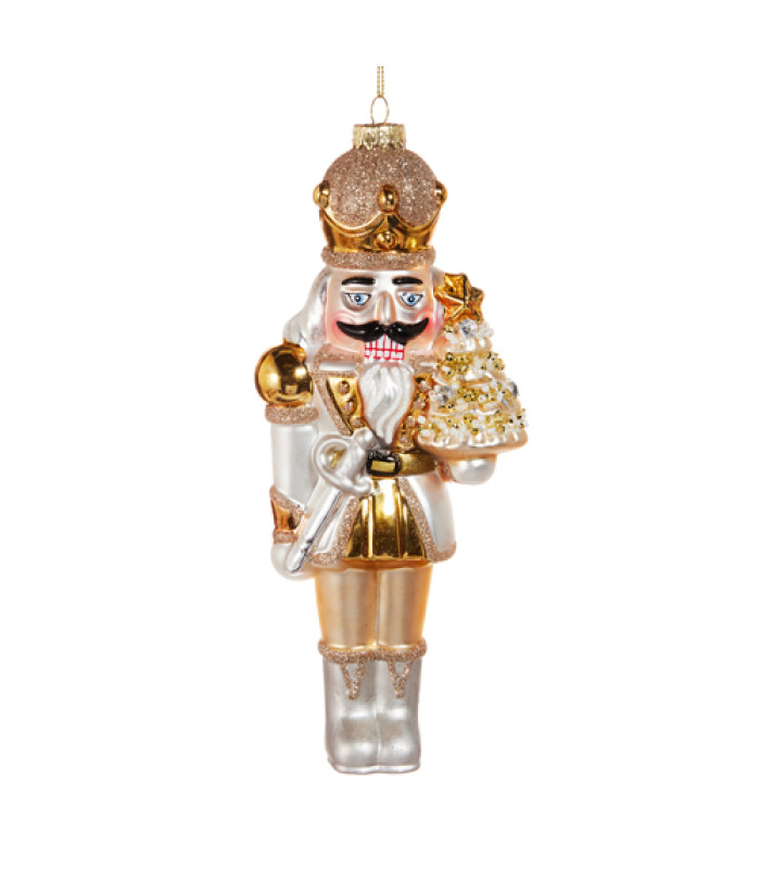 Ornement en verre, Roi Casse-Noisette, mesure 21 cm