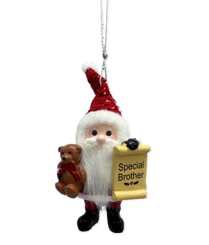 Ornement, le Père Noël avec sa liste de sages, mettant en vedette un frère spécial