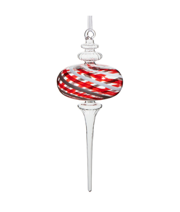 Ornement en verre, tourbillon de menthe poivrée, en forme de finial