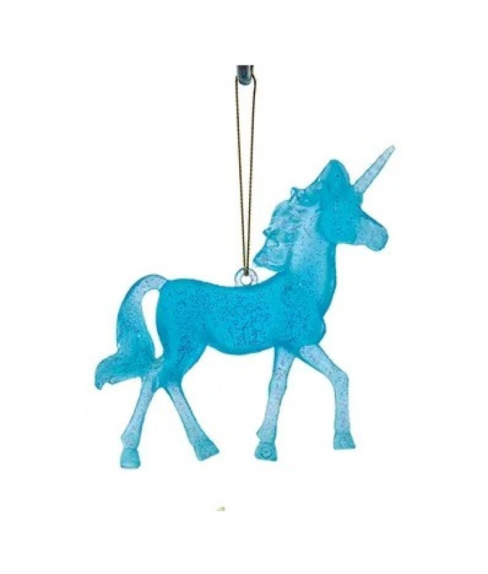 Ornement, Licorne phosphorescente, Bleue. Brille dans le noir