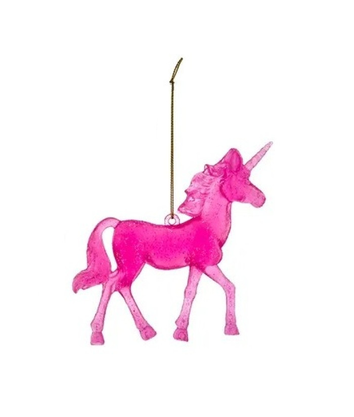 Ornement, Licorne phosphorescente, Violet. Brille dans le noir