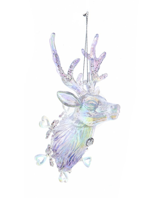 Tête de renne lavande et irisée avec flocon de neige, ornement
