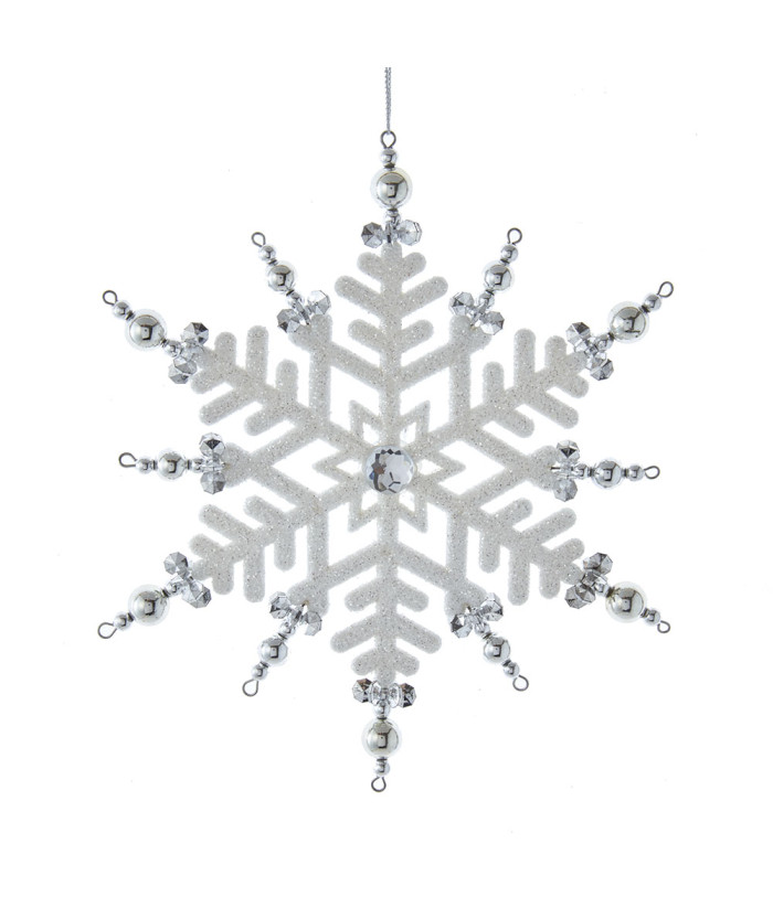 Ornement flocon de neige blanc et argenté
