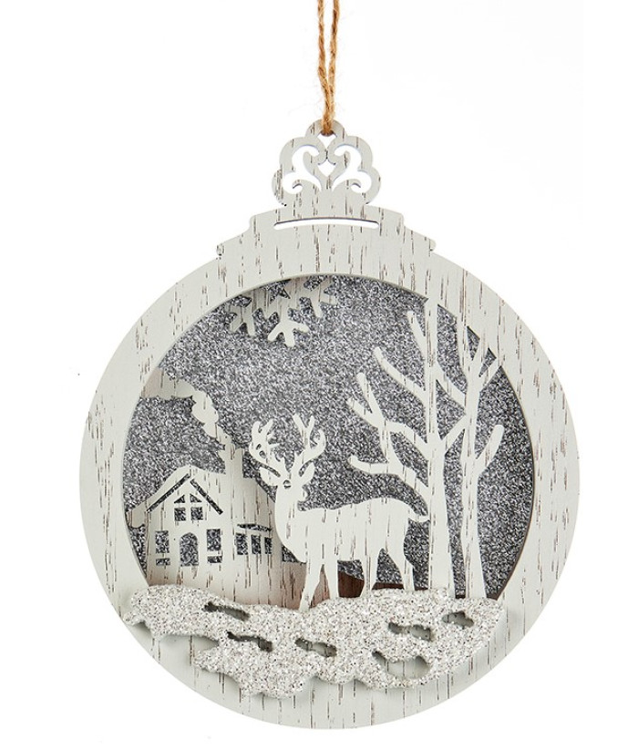 Ornement circulaire en bois, avec scène de cerf/forêt