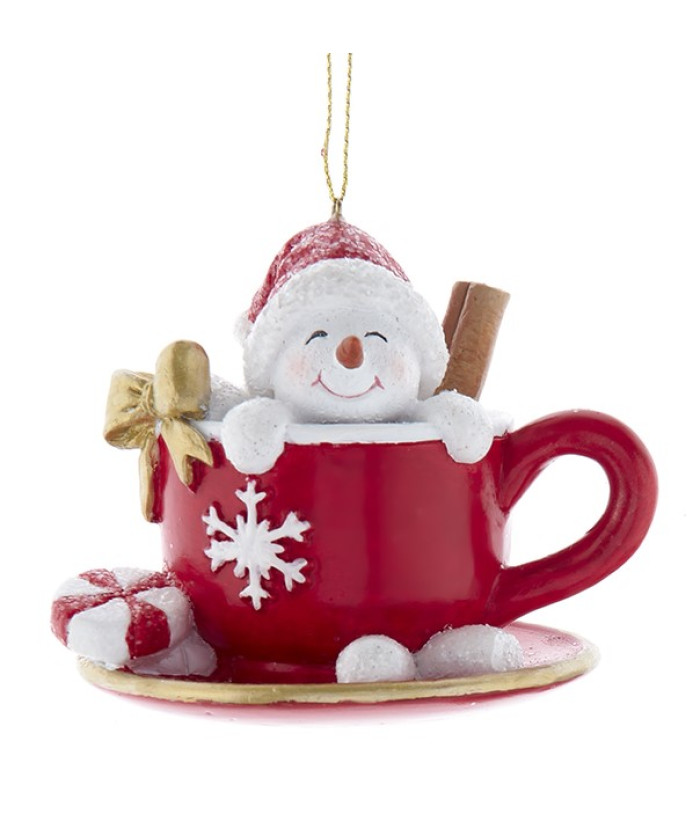Ornement, Bonhomme de neige dans une tasse saisonnière avec des bâtons de cannelle