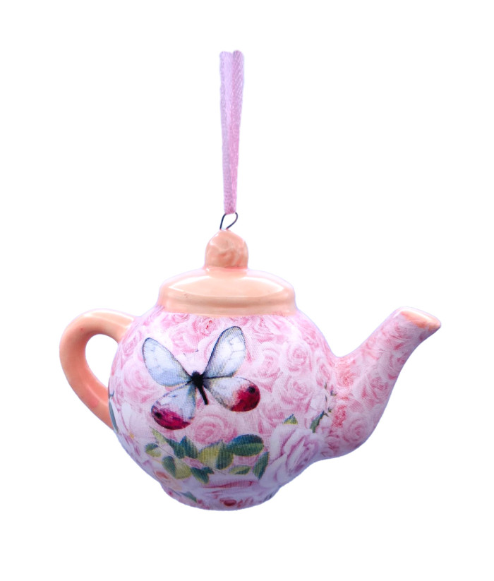 Ornement théière rose