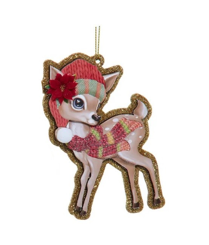 Ornement, faon de style traditionnel avec écharpe rouge et verte et garniture de poinsettia.