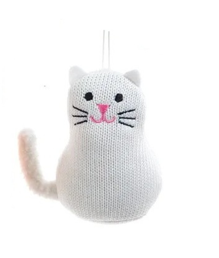 Ornement, chat tricoté, en blanc