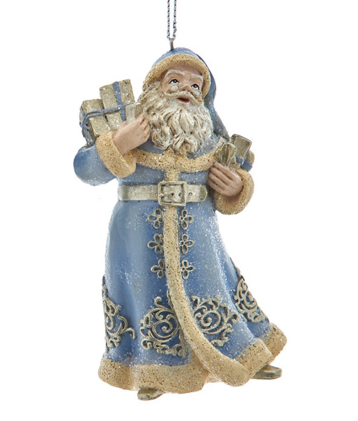 Ornement Père Noël en platine bleu avec boîtes cadeaux