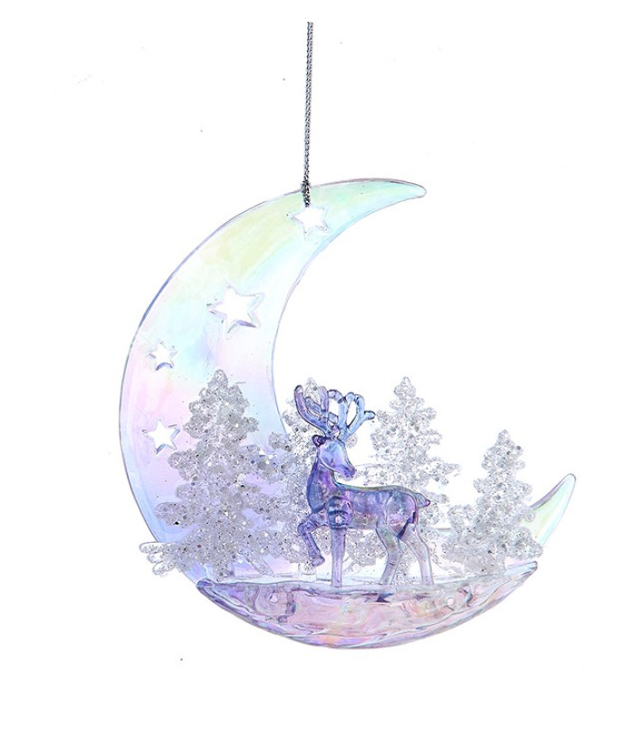 Ornement Lune avec Cerf, présentant une scène paisible d’un cerf sous la douce lueur de la lune.
