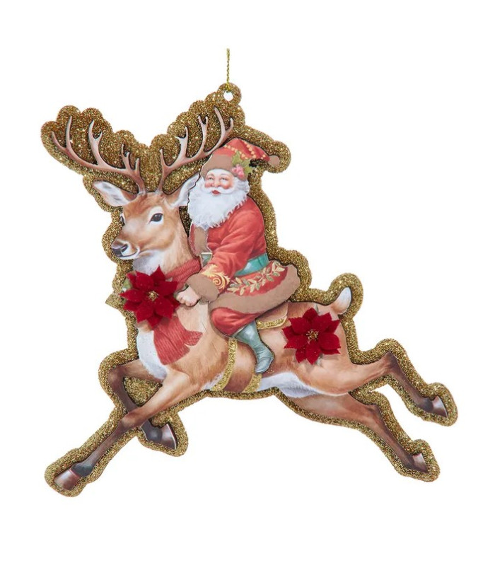 Ornement, Père Noël traditionnel sur un renne