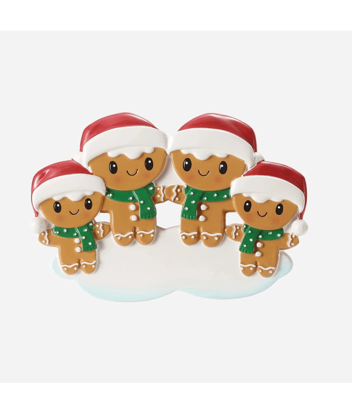 Cet ornement personnalisable montre la famille pain d'épices en train de profiter de la neige. C'est un super cadeau à Noël ou à tout autre moment de l'année.