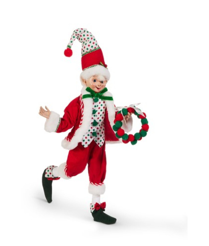Décoration de table, elfe articulé en rouge avec couronne, mesure 16 pouces de hauteur