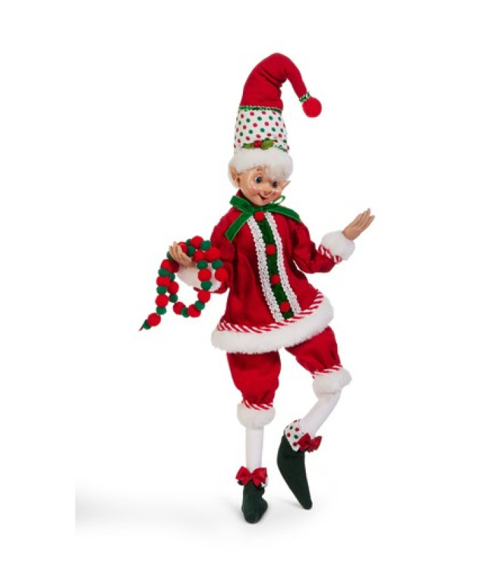 Décoration de table, elfe articulé en rouge avec guirlande, mesure 16 pouces de haut