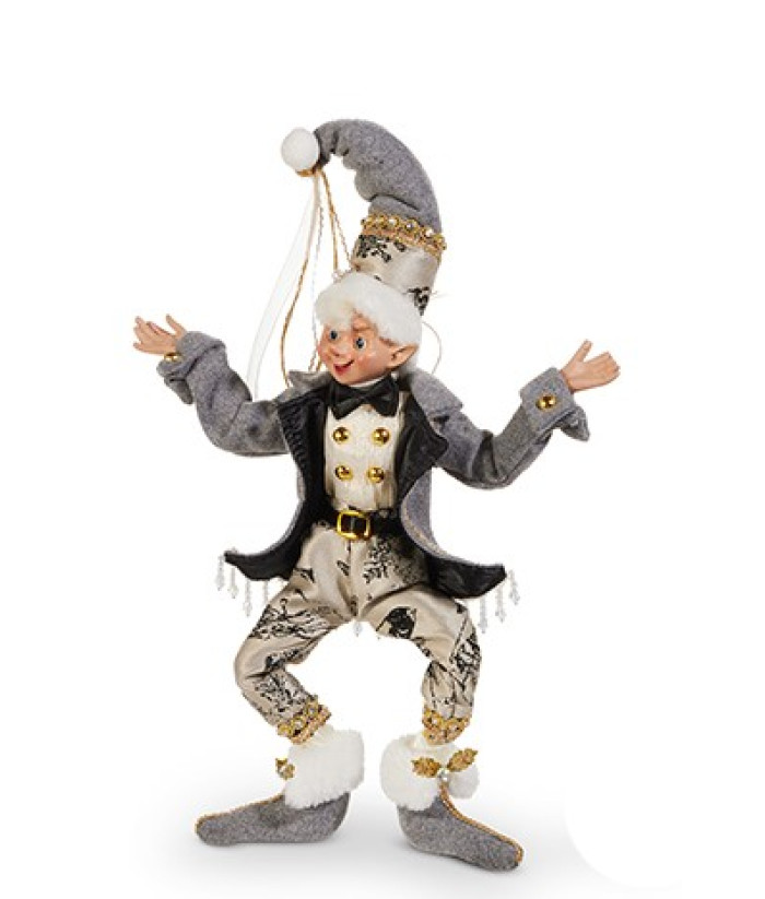 Décoration de table, lutin festif en manteau gris. Mesure 16 pouces de hauteur.