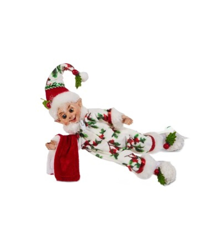 Décor de table, lutin de bain articulé, avec serviette rouge. Mesure 7 pouces de hauteur