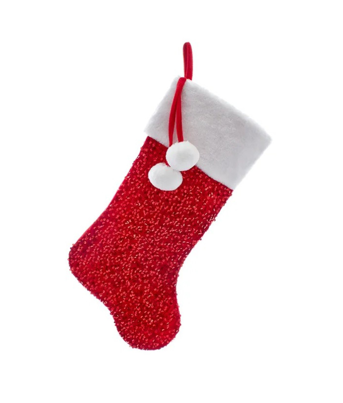 Décor, bas de Noël, rouge avec bordure blanche, mesure 20,5 pouces.