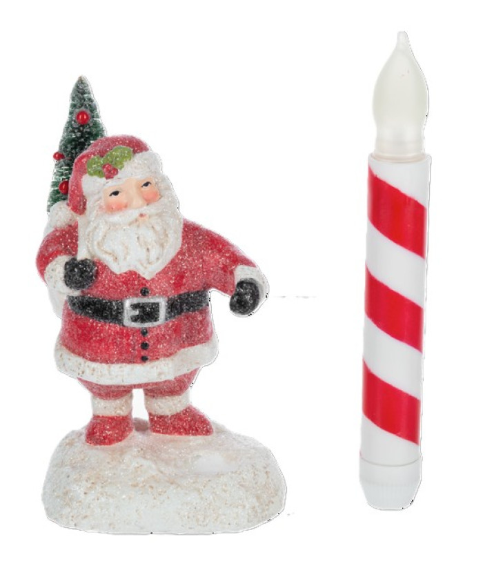 Pièce de table LED, Père Noël avec une bougie à rayures. Mesures : 18 cm.
