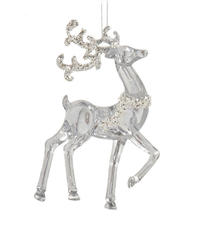 Ornement cerf transparent avec paillettes argentées