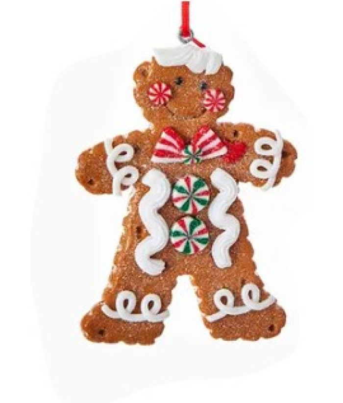 Ornement, garçon en pain d’épice avec des boutons à la menthe poivrée