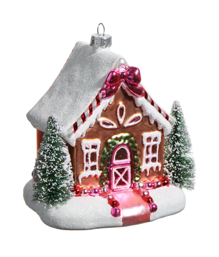 Ornement en verre, chalet en pain d'épice, mesure 5 pouces