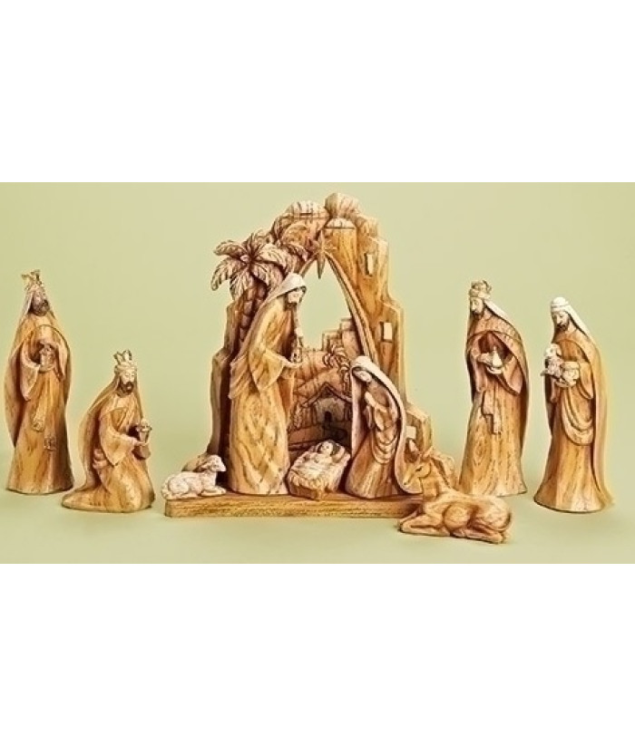 Crèche de Noël, simili bois, 9 pcs, 12"