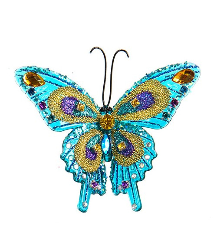 Ornement, style à clip, papillon coloré décoré de sequins et de gemmes en plastique