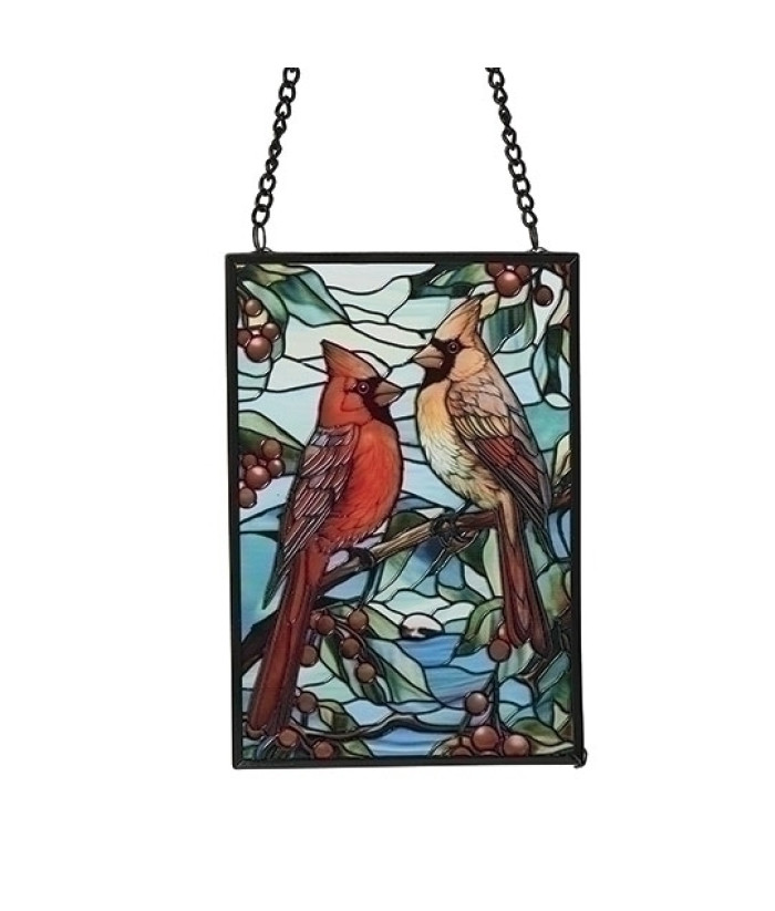 Ornement en vitrail de cardinaux avec baies de houx